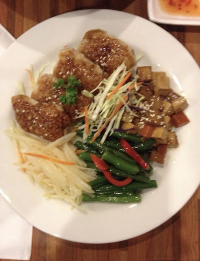 The servings aren't very generous but this can be expected due to the high cost of mock meats. We were told that the Bok Choy was nearly over for the day so there would only be a little in the dish, however there was SCARCE broccoli, carrots, beans, zucchini....there was an abundance of cabbage in the dish which was very disappointing considering the price!
