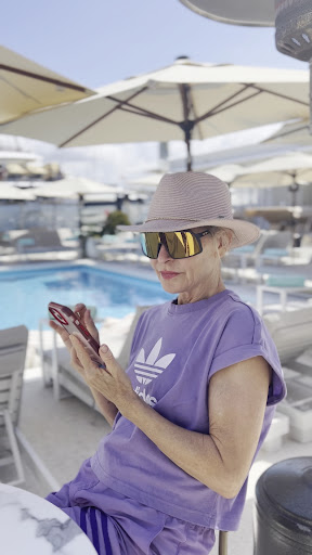 Next, the backdrop: a white colour setting with an azure blue pool and pink flowered bougainvilleas. This place is a floating club! Yaughts all around and the high rises of the strip further in the background. How was the sunset? Amazing!!!!!!!! My words and pictures can not tell enough how good it was.