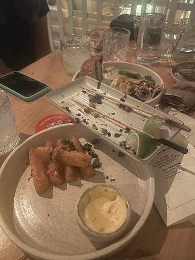 Food (4/5): The empanadas (I got beef) were hands down the best I've ever had. The haloumi tacos were fantastic, light but full of flavour. The octopus and chorizo skewers were a little oily for my liking and, whilst perfectly cooked on the outside, were undercooked along the skewer. This wouldn't deter me from going again. I'd just try other items on the menu (so every other dish 5/5 and skewer 3/5).