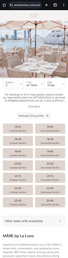 It was hideous and uncivilised. We should not have been lumped in amongst the raucous revellers but offered a table near the waterfront, which could have been reconfigured for the large group when we left, which was asap. A favourite restaurant of mine to take guests has become a trashy unpleasant, impersonal place where waiters and managers did not demonstrate the gumption to relocate two people discreetly out of the middle of basically a scrum of over 40 people and allow guests a civilised dining experience.