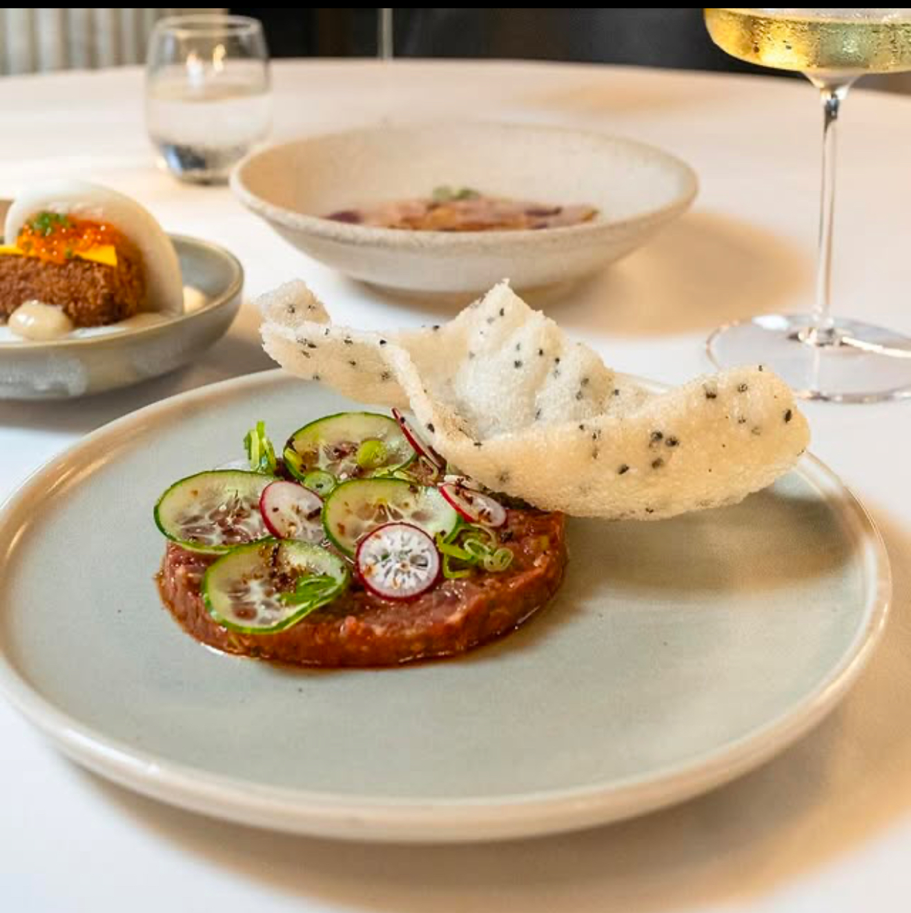 The ambiance was breathtaking—stylish and vibrant, with colored wallpaper perfectly complementing the soft sheers draped across the ceiling. It’s clear that attention to detail extends from the décor to the impeccable service and presentation.