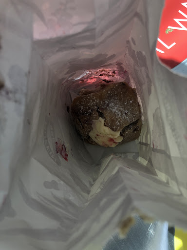 She then proceeds to bag up the muffin in such a way that when i eventually opened it, there were marks from where she had taken her displaced anger out on the muffin when scrunching the bag. She popped it on the counter, said âyep, thank you ok, byeâ