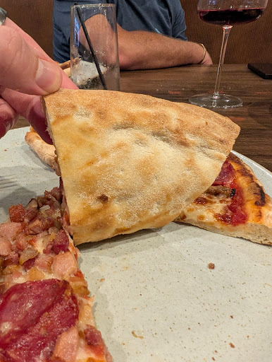 I don't really get upset about this kind of stuff, but I feel like I was scammed. $27 for a frozen pizza warmed up. The scam was the fact that they kept the pizza oven on, but never used it once for pizza... They came from somewhere unseen in the back of house. They knew it was a bad look, but kept the oven on for show.