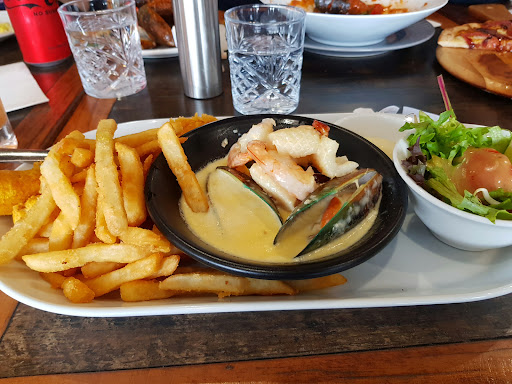View is awesome the guy who served us was friendly how ever a few things. $16 for an espresso martini that arrived half full and A paper straw cut in half in it. Asked the staff the difference between a seafood basket $31 and a sharing patter $75 - basket was battered and sharing platter just battered fish and everything else fresh. We ordered the platter. We ordered, garlic bread, seafood chowder, seafood platter, burger and chips and kids nuggets which only option for the kids drink was lemonade, not even a juice option. After receiving everything one by one (apparently that’s how we have to receive our meals ) we finally get our platter and my 3 year olds nuggets arriving last, after an hour and a half after we ordered. Every single thing on that platter was thick with yellow batter, the 6 mussels we received 3 were empty and all the size of a 5 cent piece. We took one bite and all we could taste was batter it was disgusting. After asking to speak to the manager, she proceeded to have an out right argument with us and pointed out to everyone else who was having a platter saying they are enjoying it why weren’t we. Had we been told everything was going to be battered we would have got the seafood basket. They refused to give our money back and threaten to call the police. I should have taken note while I was standing in line to order our food the other couple that was spinning out about getting there order wrong and then charging more money. What a disgusting level of professionalism the manager and I’m guessing her husband when they wanted to fight my husband all because we told them there seafood was disgusting. When your serving someone who is from nz and trying to tell us that is how small the mussels are back home please know the legal requirement to obtaining seafood lady because your actually breaking the law. Shellfish should be of 2 -3 centimetres in size when yours were merely 0.8 centimetres yes we measured them! Undersized seafood is a crime so maybe I should have let you call the police on us so we could get them to check the size of your illegal shellfish you are serving up at your establishment. Absolutely would not recommend the seafood platter...
