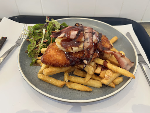 Burger was average. Chicken burnt on the edges, dry. Chips tasted old. Not good...