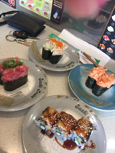Read moreI nommed my way through about $35 of sushi train which got me a tower of plates and I could have nommed more if I didn't have a movie to get to. Everything was tasty and I could order fried dishes fresh (but took a little time to prepare). It was fascinating and fun watching the staff zooming about preparing the food as I ate, they really have it down pat.