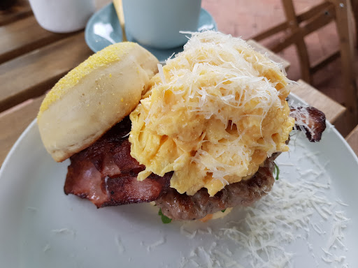 This is one of those places where the staff will try to avoid any eye contact. Today I got there at 6.30am for breakfast and despite the early time, it was still a little busy. I decided to try the "Morning After", which is a breakfast burger with sausage, scrambled eggs, bacon. It's pretty huge. They bring it to me without any cutlery or napkin. At first I was thinking, are they going to bring the cutlery? Didn't look like it. Am I meant to eat it with my hands? I began an attempt, but realised it would get very messy and I didn't even have a napkin. Meanwhile, a swarm of flies has also noticed this food, so I spend the next 5 - 10 min trying to wave down the staff to ask for cutlery.
