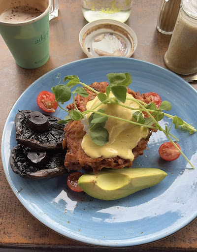 My score is based on the Rosti Stack we ordered. We've been coming here for years but this time the food was a let down. My husband and I ordered the same meal. His came out first, warm, mine came out a few minutes later, the bacon and egg were cold and mine was missing the avocado so I had to ask for it. Their potato stack is now a cube, the centre was cold (like fridge cold), it seems like these are precooked kept in the fridge and then warmed up but not enough for the centre to heat up. My poached eggs resembled a hard boiled egg, see photo. Both my partner and I agreed that the holondaise sauce did not taste like holondaise. The upside is we were told the Rosti Stack is now GF. The cappuccino on almond milk in a mug tasted lovely but could have been hotter, was lukewarm. The new chef might want to rethink...