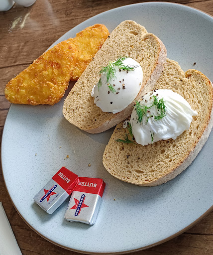 Toast was barely cooked (photo is AFTER I took it back and asked them to toast it a bit better!) Eggs were poached ok and bacon cooked well.