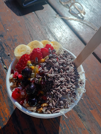 Fruit was just a frozen fruit mix, from what I could tell, it didn’t taste fresh, very bitter, a very overripe banana, the granola was just crumbs & not crunchy at all, acai flavour was dull and brown. Overall not a very fresh tasting acai.
