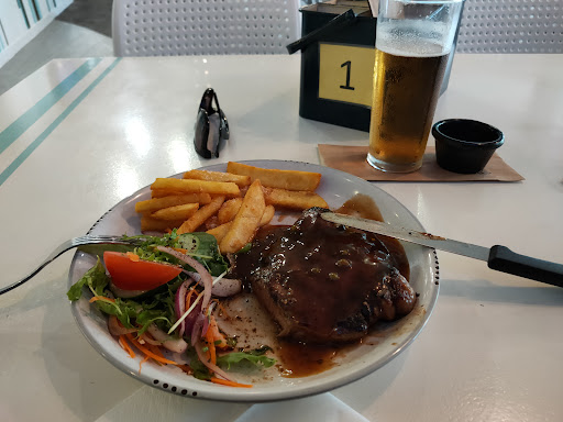 Read moreWe decided to go here for lunch after it was recommended to us by our son. I joined the legends and got a discount on all our purchases. The lunch time menu is fixed price @ $16.95 for non members and $14.95 for members. For that I got a 200gm steak with salad and chips with my choice of pepper sauce. The steak was beautifully cooked to medium, and the chips were crunchy. The quantities were just right and we left feeling well fed without feeling overfull. The drinks were really well priced. And the staff were friendly and courteous. It's a pub atmosphere so don't expect expect to overlook the beach etc. Although the decor is beachy and there is outside seating also. All in all a very pleasant meal which exceeded our expectations. We will definitely be back. BTW the last time I had a similar steak ,in a place famous for steaks, I paid twice as much and it wasn't as well cooked!! We will...