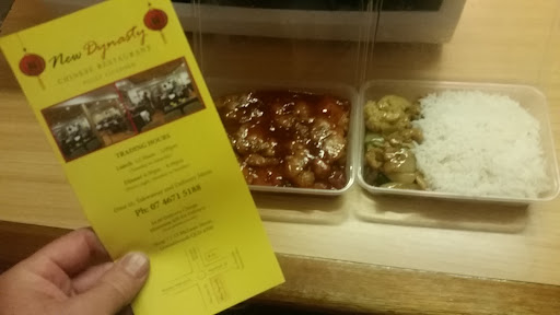 For a remote regional based Chinese Restaurant, the New Dynasty was quite good. And I can relate to what they're trying to achieve in an outback Australian regional centre. I asked them if we could have something that the chef would cook for people who were used to eating various Chinese cuisine all over the world, but they kept wanting to point us to what was popular for the local patrons. I didn't really want the 'Australianised Chinese' menu, but found it hard to make them understand. We settled on the heavily promoted 'crispy skin duck', which although having a lovely subtle 5-spice marinade flavour, ended up being a bit too crispy, and was unfortunately overcooked. It would have been lovely if a little less dried out. We also had their special Mongolian sauce with lamb in a sizzling plate. It was a tasty Mongolian sauce, if a tad on the heavy handed side of the salty/sweet balance. When I asked for vegetables, we finally understood each other, as I mentioned Asian greens, & the waitress was concerned that this was what the chef served up for the staff. Having reassured her that we wanted to be eating what they, the Chinese staff, would be eating, we finally got it right and had a lovely plate of wok tossed Chinese spinach with garlic. My only suggestion for the management is to perhaps have a separate small menu (in English) of what they would cook for their Chinese or Malay friends, that they can offer to the more culinary adventurous Anglo-saxon travellers who pass...