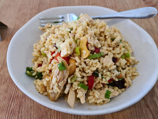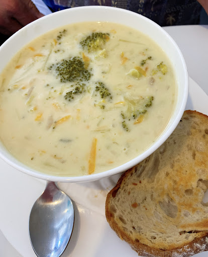 Great little cafe right next to Mitre 10 on the Main Street with indoor and outdoor seating . . They have a display unit full of paninis and sandwiches and tempting desserts and a special of the day on the counter. Grab a table then order at the counter. We shared the broccoli and cheese soup, roasted vegetable panini and my husband inhaled the caramel slice. Great latte and long black. Lots of hii hostess gourmet gifts for sale in the ordering area too. Public toilet across the road and...