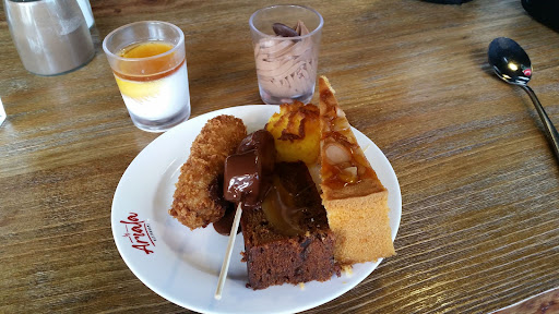 The desserts: Plentiful, but the cakes were dry and crumbly and not that moist. The rest of the desserts aren’t that remarkable; just small jellies, puddings, and ice cream. They have a chocolate fondue fountain that has had every 5 yr olds fingers in it (silly parents lifting them up!). The coffee machine doesn’t taste very good at all either. Undrinkable.