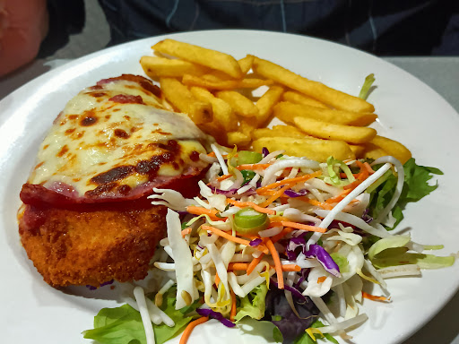 June 2 2023. Walked past and decide to join club, only $5 social membership. Booked a table on verandah and it was the Friday night meat raffle draw. 44 trays $1 for a block of numbers. (Didn’t win any!) Dinner was delicious and the sunset view beautiful. I had grilled barra described with seasonal veg but only had broccolini, roasted potato gratin more like a little dry potato and sweet potato bake with hollandaise sauce, would of liked a little more of the sauce. Meal wasn’t exactly the same as the description nonetheless it was delicious. Hubbie had the chicken parmie. What looked like an entire chicken breast topped with cooked ham and melted mozzarella, Napoli sauce and he had coleslaw and chips or you could have mash and veg. He couldn’t finish the meal it was so big. We also had the garlic bread topped with cheese and bacon 4 large pieces which was hot and delicious. Cost not being a member was $71 with member discount came to $61. Meal was filling, delicious and we thought good value. Will be going back to try something else on the good choice menu and they also have a specials board. If going on a Friday night make sure you book especially because it’s...