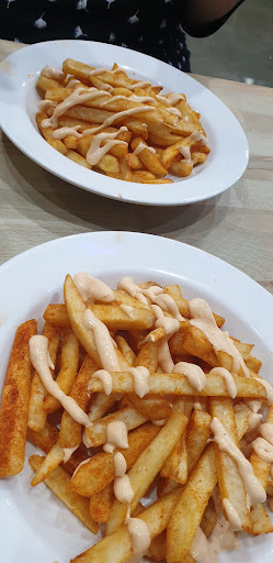 A big plus was staff accommodating us with our request to share 2 desserts but split onto individual plates (so we weren't eating off the same plate sharing a dessert). Pictured on the dessert plate is half the large chocolate nachos and 1 of the dessert tacos. The drink was a house wine and a Pina Lada (mocktail). The fries were amazing. Pulled pork burrito was so-so but the salad in a taco...