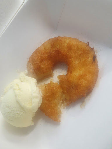 The burgers, fish, chips and calamari were delicious and good value for money. The staff were very friendly. I mentioned it was my birthday when ordering over the phone and she wished me a happy birthday (nice) When I picked it up they had a special extra....a container with a candle on it and on inside were 3 pineapple Fritters as a gift and on the inside lid was written Happy Birthday....Very Special! Thankyou so much Delgado's