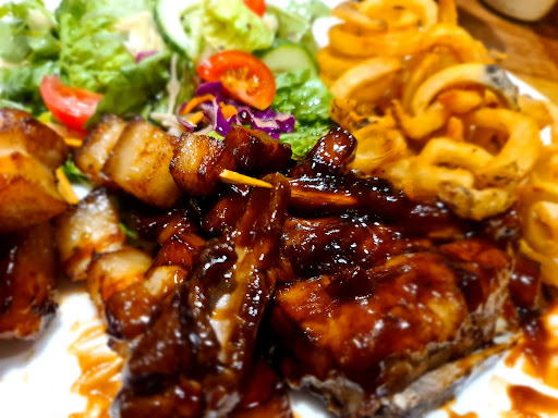 Read moreIt's interesting when you visit these mainstream establishments (if interesting is the right word to use). There is a good choice of meals and they are usually done quite well. So the food is pretty good (not GREAT, but definitely good). What I do find interesting is the staff. Now, I know these mainstream establishments have usually got good business plans and generally know how to make ends meet. Our table staff were pleasant enough, but just lacked that little bit of maturity and professionalism. I mean, the average age was about 18 I reckon. I wasn't expecting the world, I just didn't want our drinks just dropped on our table so they splashed (explains the often sticky tables though) and the meals with fingerprints all over the plates (there are jerms and covid is a real thing) and just dropped on the edge of the table so you had to reach and grab them yourself (probably couldn't slide them as the table was too sticky anyway). Like I said, just lacked a little professionalism. I am glad we had the waitstaff we did have though. There was one you fella that looked lost and kept running his hands through his hair and scratching his nuts, that if he had have dropped out plates on the table with fingerprints all over them, I would have asked for new meals.(coulda had more than covid on those ones) lol Anyhooooo.... I rant. Meals were good, environment was good, service was good (ish)... And value is what you'd expect.. Was good.... And I guess, that is all you can expect from these bigger restaurants. Pork out plate wasn't bad. Have included a pic. Lots of sauce (maybe a little too much) and good portion. Everyone enjoyed their meals. Good, convenient......