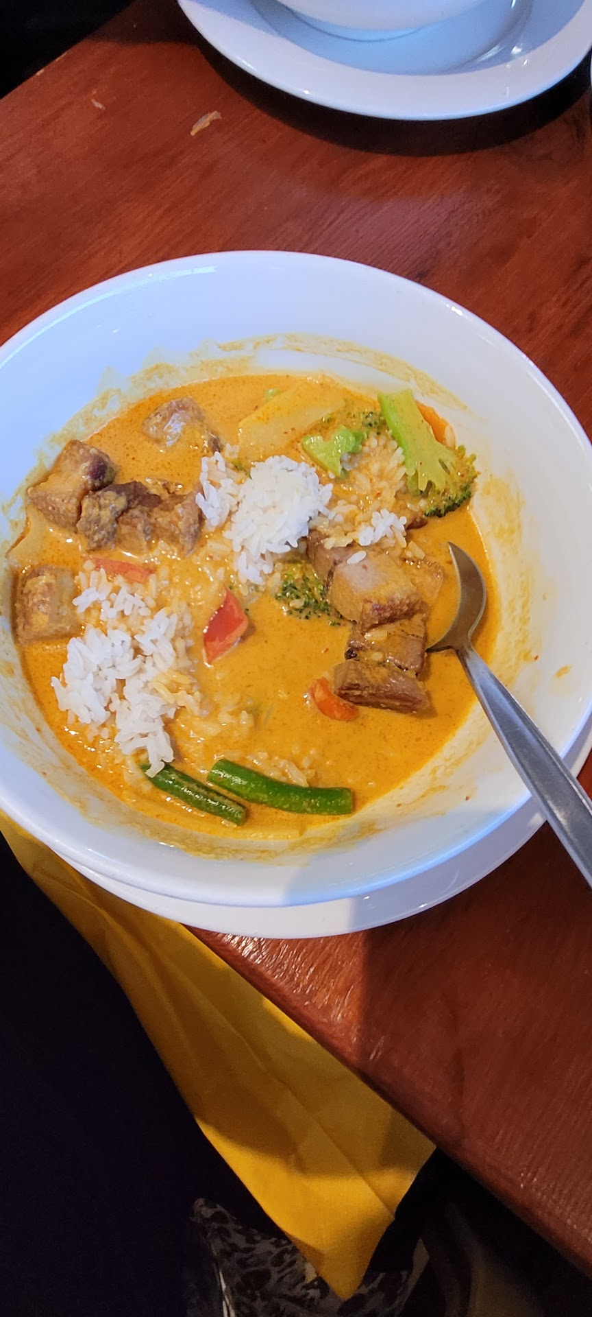 Disappointing experience, would have been 2 star but I'll tell you why I decided to give only one. We ordered pad Thai, green curry and the "chef special" crispy barramundi. Pad Thai was ok but had a weird sourness I have never experienced with pad Thai, the green curry was actually pretty good, however the supposedly crispy barramundi was gross. After picking at the fish and not eating it, we pretty much finished our pad Thai and green curry, I was sitting at the table for over 10 minutes not eating anything, with this conspicuous massive plate of barra sitting almost untouched on the table. The waitress must have walked past 10 times. I was waiting for the waitress to ask how our meals were but she never did. After literally staring at her she finally stopped and asked if we were done. I said yes we are done, but we didn't even eat the barra, she said that's ok and went to grab the plate to throw it out. I said what do you mean that's ok? Don't you want to know why we didn't eat it? She said ummm do you want me to get the manager or something, I was like yeah ok.. (awkward much). (waitress if you are reading this it is your job to ask how the meal is, not just are you done?..) So then the Thai lady showed up, I explained to her the fish advertised as crispy fish was not crispy at all, in fact it was soggy and rubbery, she said oh that's because of the sauce, (there was very little sauce, most of the fish had no sauce and that was also rubbery and not crispy), I said to her it doesn't taste good either, it tastes like frozen fish, she said she's never had a single complaint in 6 years. Not only did she have no interest in asking if we would like it re cooked or if there was something else we would like to try etc, to ad insult to injury she refused to deduct the fish from the bill. Very poor form. I have had the same dish many times overseas and when done right with fresh fish and actual crispy skin it is mind blowingly good, this was actually disgusting, but even worse than that was the attitude given and zero attempts made to rectify the problem. Then refusing to deduct it was the icing on the cake. I can cook much more delicious barra at home buying it from woolworths (because that isn't frozen). I certainly won't be going back and be warned if you are expecting a proper Thai crispy fish you will be sorely...