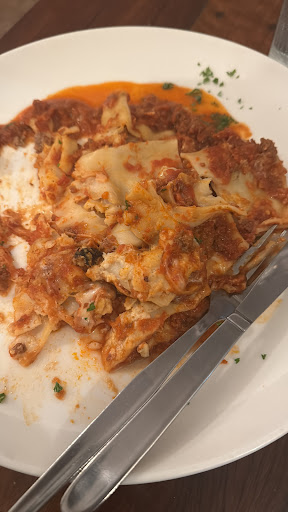 Meals arrive eventually, the ravioli with duck was a very small meal compared to the others, tasted good but not a lot of duck or ravioli. Strangely, the gnocchi with creamy pesto arrives despite being told sold out, the birthday girl really enjoyed hers. My husband had the lasagne, big portion, reasonably tasty but strangely no side salad. Never had one just a slab in a bowl. My pappardelle with osso buco was a little salty for my taste but reasonable size and edible but the sauce a little thin so needed a spoon..