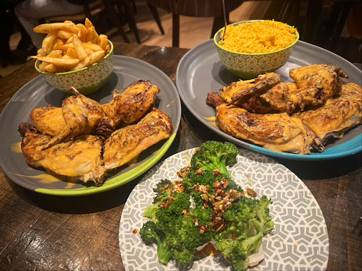 Read moreI have been to this Nando's many times over the last few years or so and it never ceases to amaze me. The chicken is always juicy and flavoursome, the vegetables are always fresh and delicious. Don't even get me started on the peri-peri chips they are to die for, whatever they put into that seasoning is a god send and a must have at every restaurant, but I guess that's what makes Nando's so special their food and seasonings are all homemade and unique. On that note, I have only had any other sides a few times and have been disappointed and never ordered them again but I can't make fair judgement off of only trying them once. The spicy rice was not spicy at all and was extremely dry and sticky, I could barely spoon any out without pulling it all out! The garlic bread was also burnt and very bland but I can't make a fair judgement with only having tried these things once. Overall the staff are usually very welcoming, except I've had one experience with a slightly rude and unengaged young lady. Other then that I would recommend coming to pay this Nando's a visit, but strictly sticking to a main meal and chips as the side if you don't want to be...