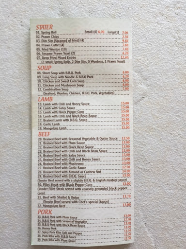 Read moreI got takeaway last week and it would hv to be the worst Chinese I've ever had! I got a chicken and sweet corn Soup that was solid like jelly in the container and was disgusting! I had this lemon and fried armond Chicken that was disgusting as well, it was stringy and over cooked and yuk! I will never go there again, only went cause a mate suggested it, I usually go to Lai Lai down the street which I will keep going too cause they've been incredible for 20yrs+ 😢 I don't recommend anyone go to this disgusting...