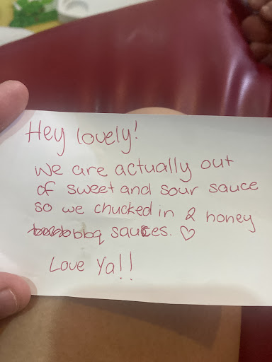 Read moreWe order from the North Caboolture Red Rooster quite often and they have always been great 😃👍, but last night went to another level. We placed a delivery order and when it arrived there was a note inside (see attached photo) explaining they were out of Sweet Potato Fries (bummer ....NO ONE does sweet potato fries as good as North Caboolture Red Rooster 🐓.....crunchy on the outside, a tiny bit of char and soft and fluffy on the inside...never soggy) and that they had replaced them with crunchy roast potatoes, AND included an extra Chocolate Mousse as a "Sorry, hope you still love us" kind of gesture. Thank you to whomever it was that wrote this note and made the decisions to rectify the situation how you did....you gave us a very personal customer service experience that is usually lacking in most fast food restaurants, and your small gesture actually made our night. Keep being awesome North Caboolture Red...
