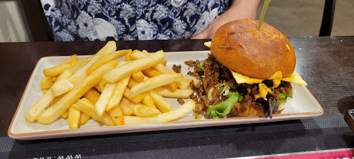 We have previously gone here for drinks only - it's an easy walk from where we live - so decided we just had to try their food as they are so close. I really wanted to like their food - because it is great that taverns offer vegetarian options - but the food was quite ordinary. I ordered the Pumpkin Cheese Risotto but it wasn't available so had to get the Vegan Parma. My husband got the Nature's Bliss burger - which had shredded mushroom instead of a patty. The burger looked okay but was incredibly dry - should have had some kind of sauce on the shredded mushroom to make it a little more palatable. The vegan parma was not appealing to look at - it looked overcooked - vegan schnitzels don't have to be cooked as long as real chicken schnitzels - so it was quite overcooked. The topping - which was a pesto with olives and capsicum and vegan cheese was kind of odd tasting - the olives were overpowering - it was also quite dry - and as the parma was overcooked it could have used some proper sauce. I couldn't finish it. The best part was the side salad - great selection of leaves and a nice dressing. There was also an absolute overabundance of chips! So so many chips - couldn't even finish half - they were just ordinary. If the price of the mains had been reasonable - I wouldn't really care too much - but the vegan parma was $32 - so overpriced for what you get and more expensive than the chicken parma. So won't be going back for a meal there again. But the staff here are amazing - all very friendly and efficient - pity the food doesn't match...