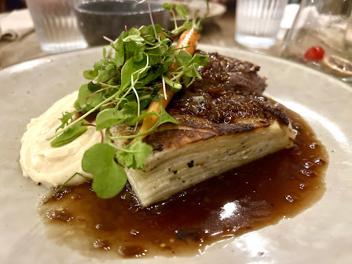 We had a shared mixed menu with its standouts being the juicy pork belly, the absolute slab of charred rib eye fillet (bone in and med rare) that was seasoned beautifully with rock salt and the fennel and radish salad. Of note was the compressed potato and the four sauces that came with the meat, chimi churri probably the best.