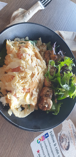 After 10 mins we got our breakfast juices, all fine. Then waiting another 30 mins to get our food. The bacon and eggs meal was fine, cant go wrong with that, but the crepe arrived cold with no mushrooms. I told the server that I was concerned that the crepe was not fresh if it was cold and that it would make the eggs inside cold too with the cold smoked salmon and cold hollandaise sauce. I asked for a fresh warm crepe and the sauce to be warm too but I did not want it to be just heated up in the microwave as this would cook the smoked salmon. The meal was taken back to be remade. When my meal arrived back at the table it looked inedible. The mushrooms were cold, dry and shrivelled and the crepe was warmish. I asked for my money back as I was extremely disappointed. I did try the meal and found the eggs to be well cooked and and the salmon was fresh. However the crepe seemed rubbery (probably from the microwave), a lot of hollandaise sauce and there was no way I was going near the mushrooms....