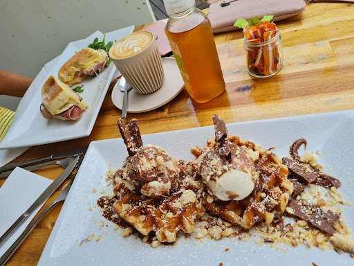 Read moreEveryone at the cafe is fantastic, and extremely friendly which is more than enough reason to visit the cafe itself. The coffees I've had have consistently been enjoyable and somewhat affordable. Unfortunately, the quality of the two meals I've had have made me reluctant to come back for anything more than the coffee. The chicken in the lime & pepper burger was extremely dry. Additionally, I came in for the fort breakfast once and everything on the plate was "okay". The bread wasn't buttered, the baked tomato was created as some weird form of bruschetta without cheese and slaughtered with unnecessary amounts of dry Italian herbs. Despite the name, the farmhouse tomato relish tastes nothing more than Heinz ketchup mixed with some onion. The pork sausage also didn't have much flavour either. I can't argue for the rest of the meals, but seeing as these two were recommended to me by staff, I find it justified to provide criticism for the meals. Chairs and table seating is also uncomfortably awkward. I'm sorry for the harsh review, but I provide it with hopes of improvements so I can bring along my friends to highlight the other qualities...
