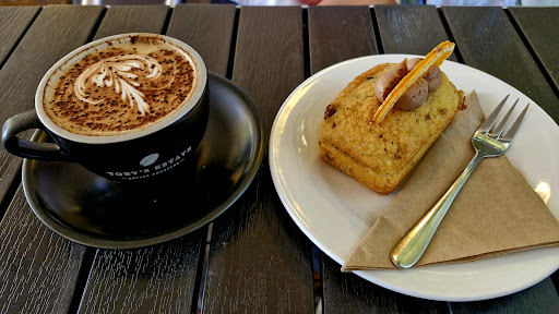 Well It's all about the the awesome handmade deserts, and out of all those beautifuly created and presented treats the Vanilla Slice stands apart and would be at the very top of the yummy list. The coffee is decent , staff are friendly and service time is pretty good even on busy days = Saturday mornings etc. Carpark out back and street. If your looking for decent eggs benne' look no further. If your over mass factory produced cakes and are looking for a real treat well that's the real treasure here. Everything in behind the glass is made locally and just ridiculously good and an experience on its own, especially with a nice coffee... but that Vanilla Slice is next level and worth the trip just to score one, and a note its VERY popular so maybe a few early visits...