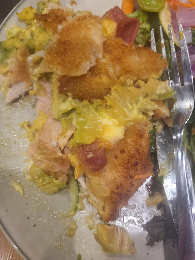 We had the Cajun Shrimp appetiser and it was definitely not Cajun. No taste at all. My wife had the pork belly salad and I had the arvo schnitzel. My schnitzel was under cooked and oily. My wife said her salad was OK but half way through she found something cut her tongue. It was a piece of glass, or hard plastic. By that point we had both stopped eating. The manager did comp the salad which I think was the minimum that he could have done.