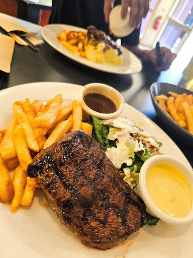 Salad had a lot to be desired!! My husband got 6 pieces of capsicum in his, I got NONE! Not a tomato in sight in either of the salads, since when does a garden salad not have tomato?? The meat.. well, talk about tough, grisly and just hard to cut, oh that's right, because we weren't given steak knives to start with, but even with the steak knives, it was still like cutting through leather.