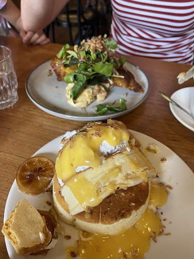 Read moreVisited there for the first time today excited to try their pancakes after hearing great reviews. When I arrived I asked for a table for two as I was meeting a friend there. The girl picked up two menus to show me to a table, when another staff member glared at my son's pram, came up and told the girl that was attending to me that they weren't accepting any more walk ins. I explained that I had called the day before and was told there was no need to book a table. The girl that was initially attending to me was very nice and took me to a table, all the while the other staff member glared at me. I realise it's not the roomiest establishment, however my son's pram is quite compact. It's not the 4x4 of prams! My friend and I ordered the pancakes which were delicious but I couldn't help but notice there were several empty tables the whole time we were there (2 hours). Two couples arrived and a party of three, all walk ins (we were near the door so I could hear the wait staff asking if they had booked), and all three groups were shown to tables. I couldn't help but feel like they tried to turn us away because a staff member took umbrage with my son's pram. My son was very well behaved and slept pretty much the entire time we were there so wasn't in any way a disruption. After eating my friend and I wanted to order another coffee so I looked around for wait staff. The staff member that was upset because I went in with a pram told me everyone was busy so we would just have to wait...... Which we did but couldn't she just say someone would be with us in a moment?!? Again I would like to say the pancakes were amazing and the coffee was delicious but I won't be going back there again, nor will I recommend it to family...