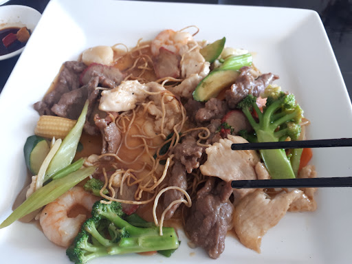 Read moreThe food is nearly worth the sour greeting you receive from the lady taking your order. Not welcoming customer service, no smile, no customer appreciation, nothing but a blank look on her face. We cheerfully said good afternoon and were met with no reply, just a look. I was visiting from out of town and was warned by my host that the food was good, but they were not friendly at all. I thought they were joking, but nope. When I experienced it, I found myself smiling, which turned into giggling and a sense of hysteria building. I had to wait outside to calm down. The wait time was okay. The food was handed over after being checked, and not a word was exchanged. Customer service would have been 0. The food was OK. Sweet and sour pork was more coating than pork, vegetables were average, but the rice was good. I would try a different option to buy my Chinese, as nothing here would bring me back to the store except maybe...