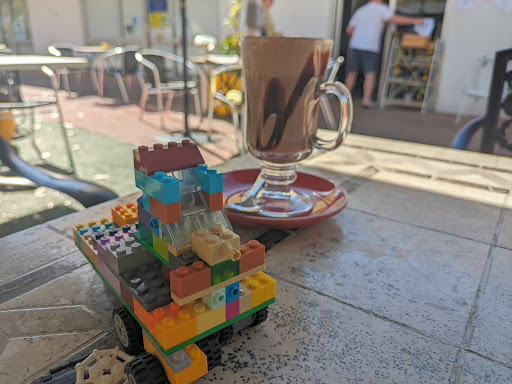 Read moreHot chocolates with a side of Lego! Our family had a lovely brunch in the courtyard here. Well presented and tasty coffees and a wide selection of cakes, pastries, and pre-made sandwiches. Hubby and I both enjoyed the breakfast burritos. Our kids loved the toys, books, colouring, and friendly cafe...