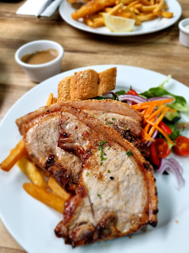 Only Dinner in Town? Very full, below average. We ordered a grilled Barramundi that was chewy and harder than expected. At some stage, we thought it was rather a Bassa fillet. Maybe it was not freshly grilled. Dissapointing. The second dish ordered was a flathead with chips. It was less fish than batter, but ok. The grilled pork chops were very chewy. The chips were brownish, and a piece of bread with butter was a bit old to be served. The salad was very good, though!