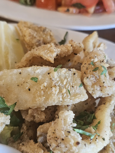The calamari, described as "shallow fried," was cold, rubbery, and devoid of flavor.