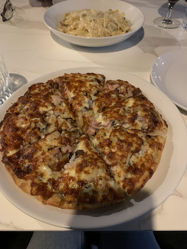 The food was amazing: Taste, portion size & the time it came out. Tried the Carbonara fettuccine and regular size bbq pizza which was the perfect size for 2 people and had a great amount of toppings on (chicken, ham, pineapple, mushrooms & bbq sauce). They even cooked the fettuccine slightly longer for us to suit our preferences. We shared the dishes and NEARLY made it through the final slice of pizza. We left so full and content.