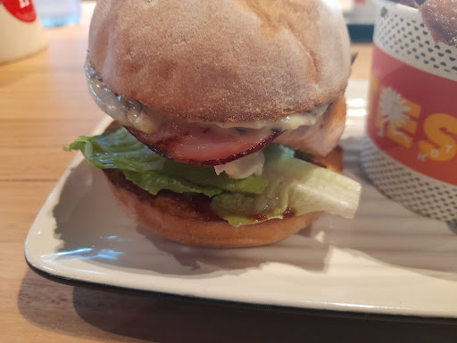 Read moreThe first time we came, we sat and tried to order at the table through the QR code. I kept getting an error message so got up to try and pay in person. That didn’t work either. Turned out, they couldn’t accept Apple Pay or Google Pay or online payments. Whatever, it happens. Next time we came, we sat and tried to order at the table through the QR code. I kept getting an error message so got up to try and pay in person. Turned out, they didn’t have the veggie burgers but for some reason couldn’t just say that when I tried to place the order. Not ideal. The third time we came we phoned ahead of time to ask if they had the veg burgers. They did! So we came in, sat down, tried to order through the QR code. No veg burgers. Clown show.