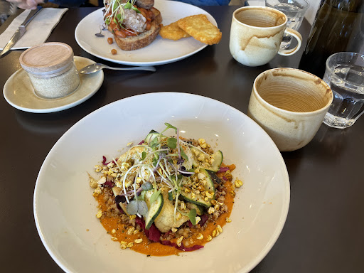We dined at this great little restaurant with friends having previously been impressed by their breakfast and lunch offerings. They bake their own bread and itās well worth the trip to Bellerive to purchase your quotidian loaf. The small menu, which changes constantly, is designed for sharing - with selections of small, medium and larger dishes and includes vegetarian options. The food is sourced locally and is handled inventively. Everything we ordered was a feast to the eye and to our palates. Standouts included the tomato custard eclair, the potato cake with beef tartare, the carrots with Comte and Avruga, the tortellini, the loin of lamb and the hanger steak. The staff are very friendly and well informed about the composition of each dish. We could not fault the food or service. Our only slight problem was noise but the staff were happy to reseat us to a quieter position. We plan to return regularly and would recommend it highly. Sadly, the food was so appetising we ate it all before we thought of capturing our...