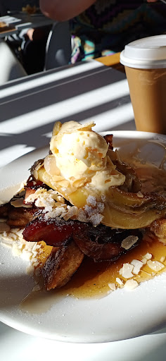 Love the roasted veggie stack - my go to order, (even with the price increase.) My friends go for the corn fritters, and the soup is always filling and tasty. Coffee is great with plenty of non-dairy options. Gluten free/dairy free desserts available also. Service is friendly and attentive, however it is a small kitchen so be prepared to be patient for food...