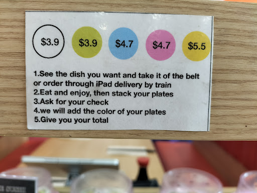 Read moreWe booked for a group of 7 on a Tuesday night. Super happy we did, all plates were the one low price of $3.90 which is super cheap! Usually the plates are charged according to the colour. We had never been before and were suitably impressed by the selection, flavour, presentation, friendliness of the staff and the overall experience. The plates rolled past our table and were up for the taking. There was so much to choose from and they all were delicious. We had a celiac with us and he easily chose from the tablet menu on the table and the train delivered his meals directly to our table post haste. We devoured a massive 39 plates and had a round of drinks and it only set us back just under $170! Pretty great for a party of 7 in my opinion. Definitely worth it on the Tuesday special day, would have cost us quite a bit more any other night. Hands down can recommend for an evening out, small kids would love the train too. Will be going...