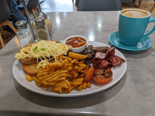 Food was ok, not great. Burger bun was soggy, not very good quality ingredients, carrot and cucumber was strange (it was too wet with beetroot, tomato, and runny egg yolk and soggy bun). Chips were undercooked and raw inside. Food came out at very different times so one person was finished before we got our meals. Restaurant was dirty, glasses were old/scratched/cloudy. There were 5 staff in the kitchen, 2 waiters, and 1 making coffee and only about 15 customers in the middle of lunch service, but we still had to order at the counter and waited a long time for our meals. I was watching other customers and they waited 25 minutes just for potato wedges. No table service, no one cleaning. Staff seemed stressed and were not very friendly, but also not busy. I guess they have low morale or bad relationship with management/owner. If the workers were kept happy and a few changes were made it could be a much better restaurant. The lady who I think was the owner was rude to us, and very friendly 1 minute later to someone she knew. The coffee was excellent and the atmosphere is really nice. The shop just needs some constructive changes, better communication and morale, cleaning schedules, better kitchen timing or training so the food is cooked properly, comes out at the same time, doesn't sit around going soggy while waiting to be finished etc. Ok cafe, lots of potential.