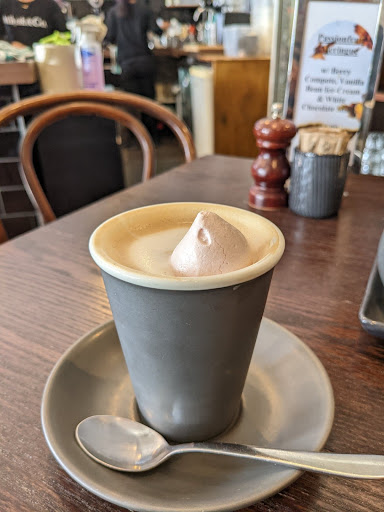 Read moreOur last brunch stop for our Tasmanian honeymoon, and the best meal we'd had all week. Everything was absolutely amazing, including the atmosphere and service. My husband ordered one classic eggs benny (from the Eggs Benedict section!) with some extra halloumi, and peppermint-steeped hot chocolate, both of which were the best he'd had. I'm a relatively new coffee-drinker, but I've worked at a café known for its coffee, and the almond latte I got was excellent! Well made, well-balanced and comforting. If you're indecisive like me, go for their "3 Little Pots" option. Instead of choosing between an eggs benedict, avo toast or fritters, you get a selection of all three at a lower price than buying a whole plate of one of the options; truly delightful. I couldn't walk out without buying a chocolate chip bikky the size of my face from the front counter, which now occupies a high rank in my entire experience of...