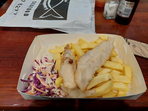The batter was very blonde, I thought it needed longer to produce that golden brown look but the batter was tasty and a little crunchy encasing tender shark. The chips were good too, a bit more crunchy than the fish but wanted more crunch, soft and fluffy on the inside. I love the tartare sauce and the slaw. A squeeze of lemon enhances the fish. I'd suggest cooking the fish and chips a bit longer for crunch would have significantly improved the taste. Not bad but double the price of your local fish & chip shop but not at the same quality.