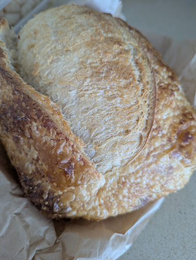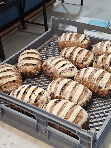 Read moreThe sourdough chocolate croissants were fantastic - crispy on the outside and soft inside. I would go back for these. Not too buttery - just right. We also bought a "Beast" sourdough (white), also tasted great. Hardish to slice but I think that was the bread knife where we were staying, not the bread. My kids were happy tearing pieces off before we'd even left. There's a lovely little kitchen garden outside that is also theirs full of herbs and flowers. We sat on the sandstone wall to eat. The tables were full of people dining in and it was very friendly overall. There was quite a long line which stalled for a bit and it takes a bit of time to wait for coffees. But we weren't in a rush. There's a gravel carpark immediately outside but we parked on the street. You need to be a bit careful with smaller kids because of the carpark. They also sell large and small bags of flours like Khorasan and Emmer for home bakers, and a bunch of other nice kitchen supplies...
