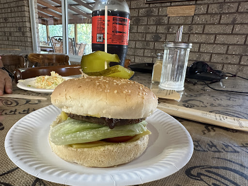 Housed in a funky space that has the feeling of a place time forgot, the cafe looks promising as you enter. It was lunchtime when we arrived and a single person was working. I made the mistake of thinking that the woodsmoke from the fireplace in the next room was the aroma of grilled food, so we looked at the menu and eagerly ordered a barbecue burger and a sausage roll.