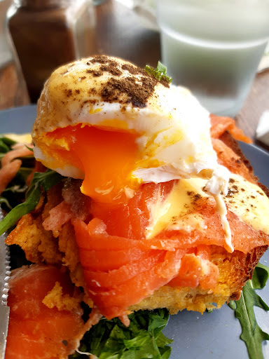 Read morePersistent in quality and dependability. It's small inside with mostly exterior seating. The coffee is consistently well executed cleverly extracted from the 'Five Senses' brand of choice. Milk beautifully textured. On point. On the rare occasion I dine in, the food is lovingly delivered to my table from the chef. Today Eggs Benny Royale with a perfectly gooey poached egg that looks so sexy I have to stop to photograph it. The yellow pumpkin sourdough is a devinely coloured flavorful base to the plated stack. Cabinet choices are daily fresh, both sweet and savoury takeaway options with premium beverages (Emma & Toms juices etc) for flavour on the fly. Meat head & Veggo options too. There are no stairs so if you're on wheels access is pretty good with a low side window for direct ordering from the footpath. If you're lucky enough to live within walking distance it's hound friendly and accessible offering cold water and seating for pooches and...